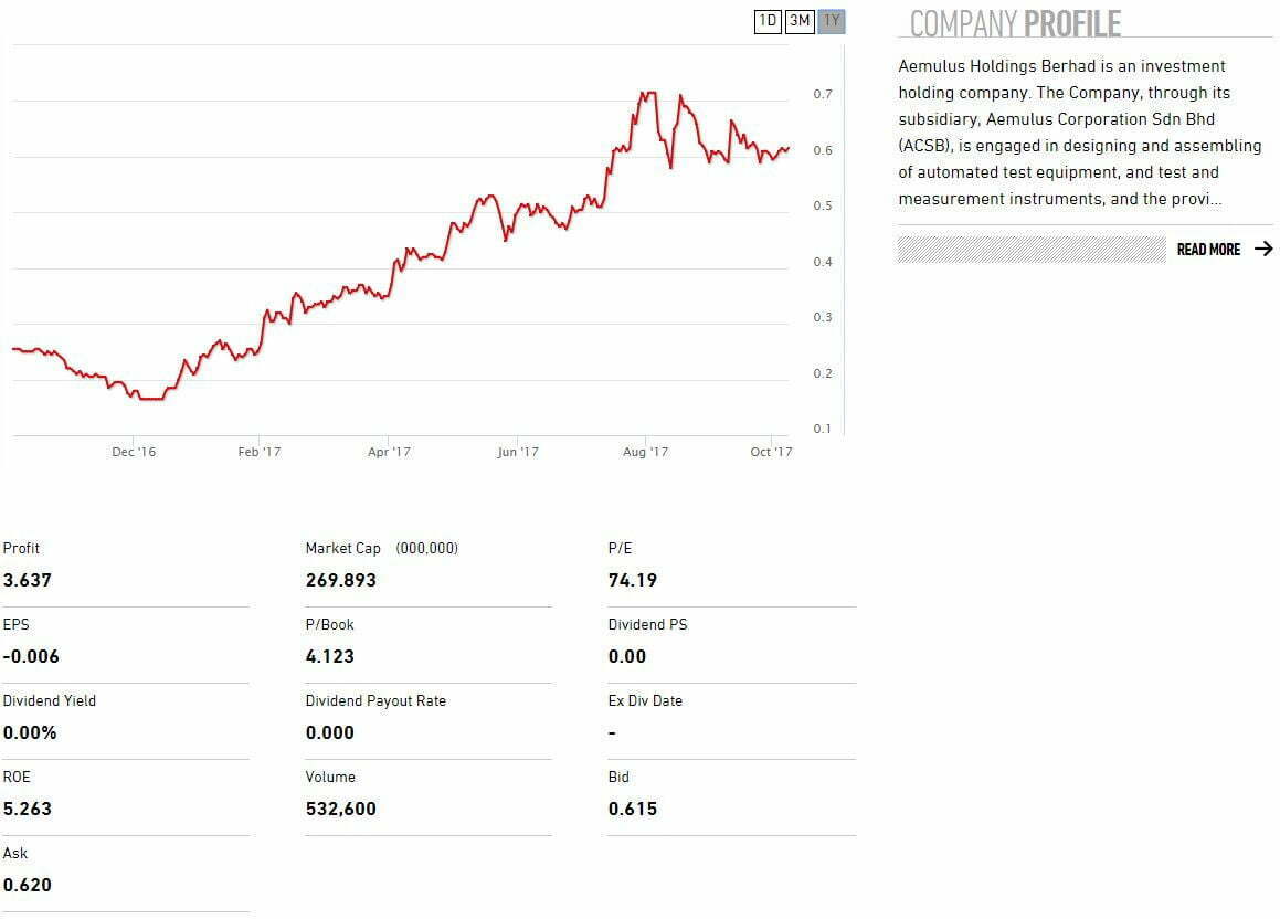 - Harga saham 9 Oktober 2017: RM0.62 seunit
