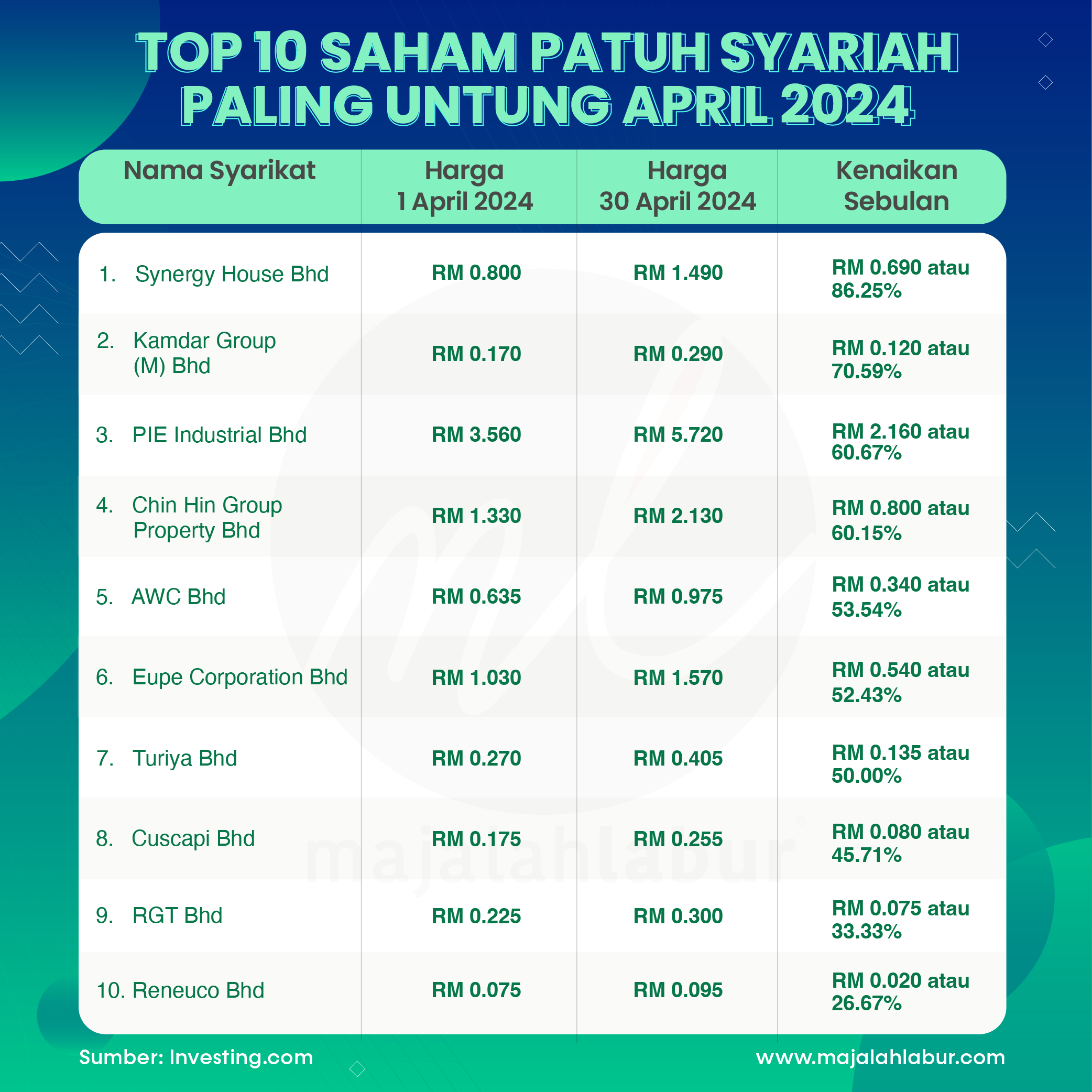 Mari kita lihat apakah saham patuh syariah paling untung bagi bulan April 2024.