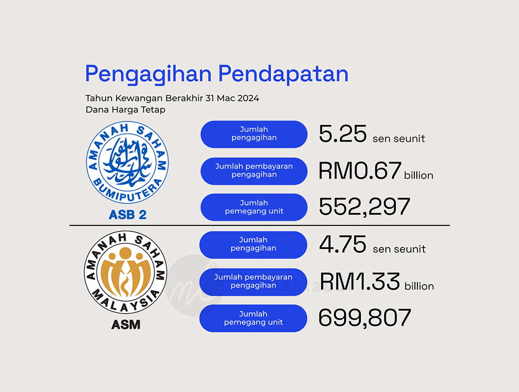 Pelaburan, Saham Amanah (Unit Trust)PNB Umum Pengagihan Pendapatan 5.25 Sen Bagi ASB 2 dan 4.75 Sen Bagi ASMBang DinMarch 28, 2024 1:55 pmMarch 29, 2024