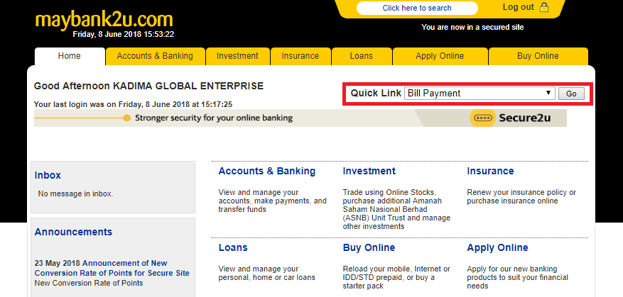 # 1 Log in ke akaun Maybank2u