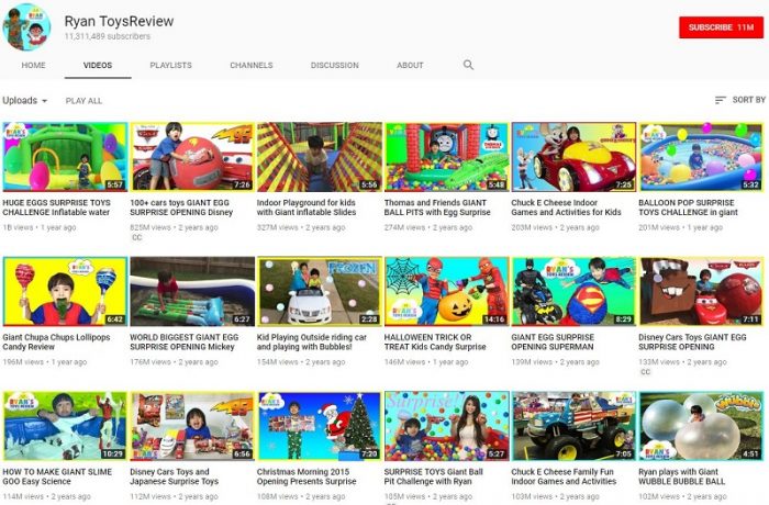 Video ini menunjukkan Ryan bermain dan memberikan review ‘Giant Egg Surprise’ yang mengandungi lebih 100 mainan dari siri popular Pixar. Telatahnya yang comel dan bersemangat itu telah membuatkan video ini menerima tontonan lebih 800 juta! Ada juga videonya yang lain mendapat tontonan sebanyak 1 billion! Hebat bukan?