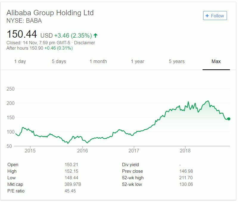 Saja nak bagitahu yang saham Alibaba ini disenaraikan di New York Stock Exchange di Amerika Syarikat. Harganya $150 USD seunit. Syarikat Alibaba kini bernilai $389 Bilion US Dolar, dah lebih daripada $1.5 Trilion Ringgit Malaysia.
