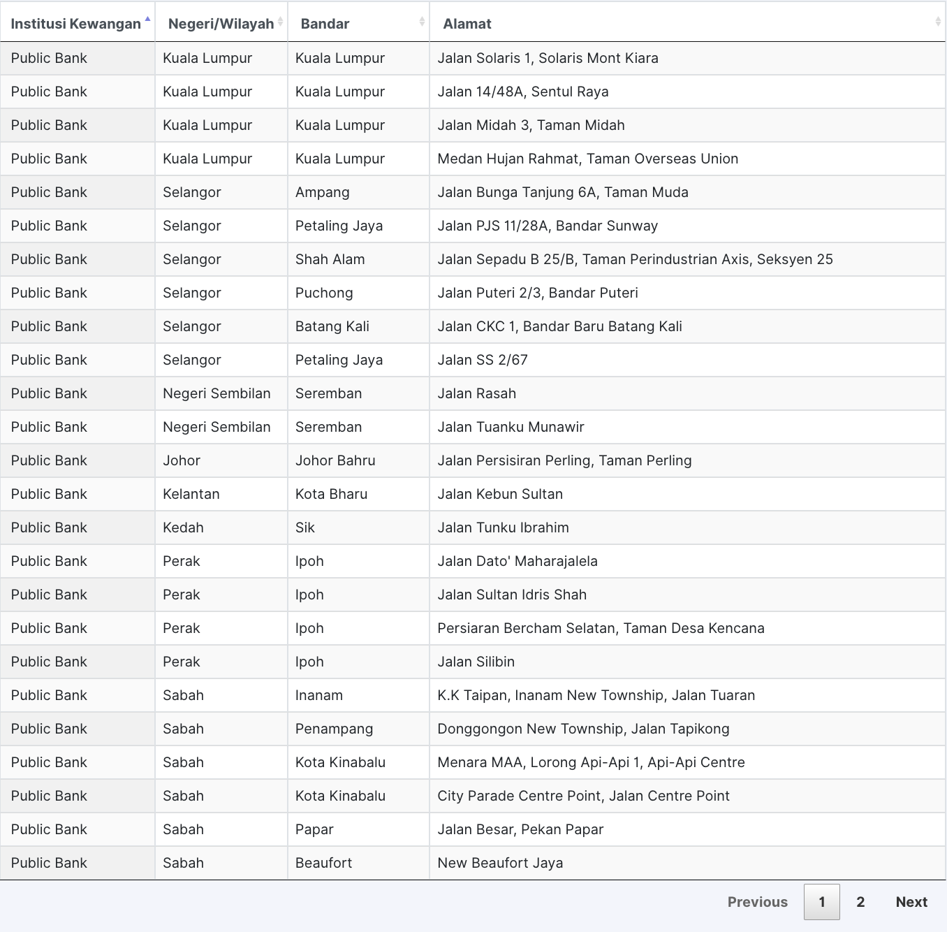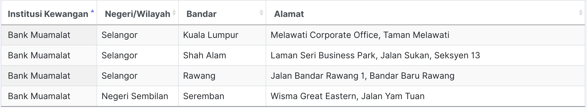 | 1 | PKNS | Ground Floor, Kompleks PKNS, 40000 Shah Alam, Selangor |