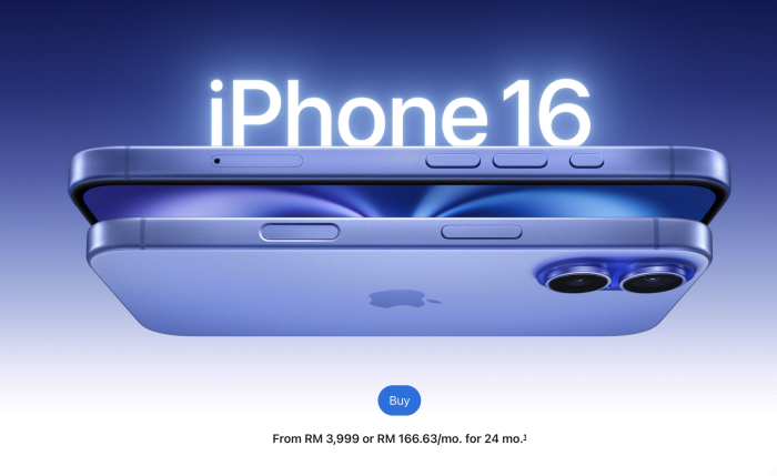 Bagi pasaran Malaysia, harga iPhone 16 bermula dari RM3,999 hingga RM7,999 seunit bergantung kepada saiz storan.