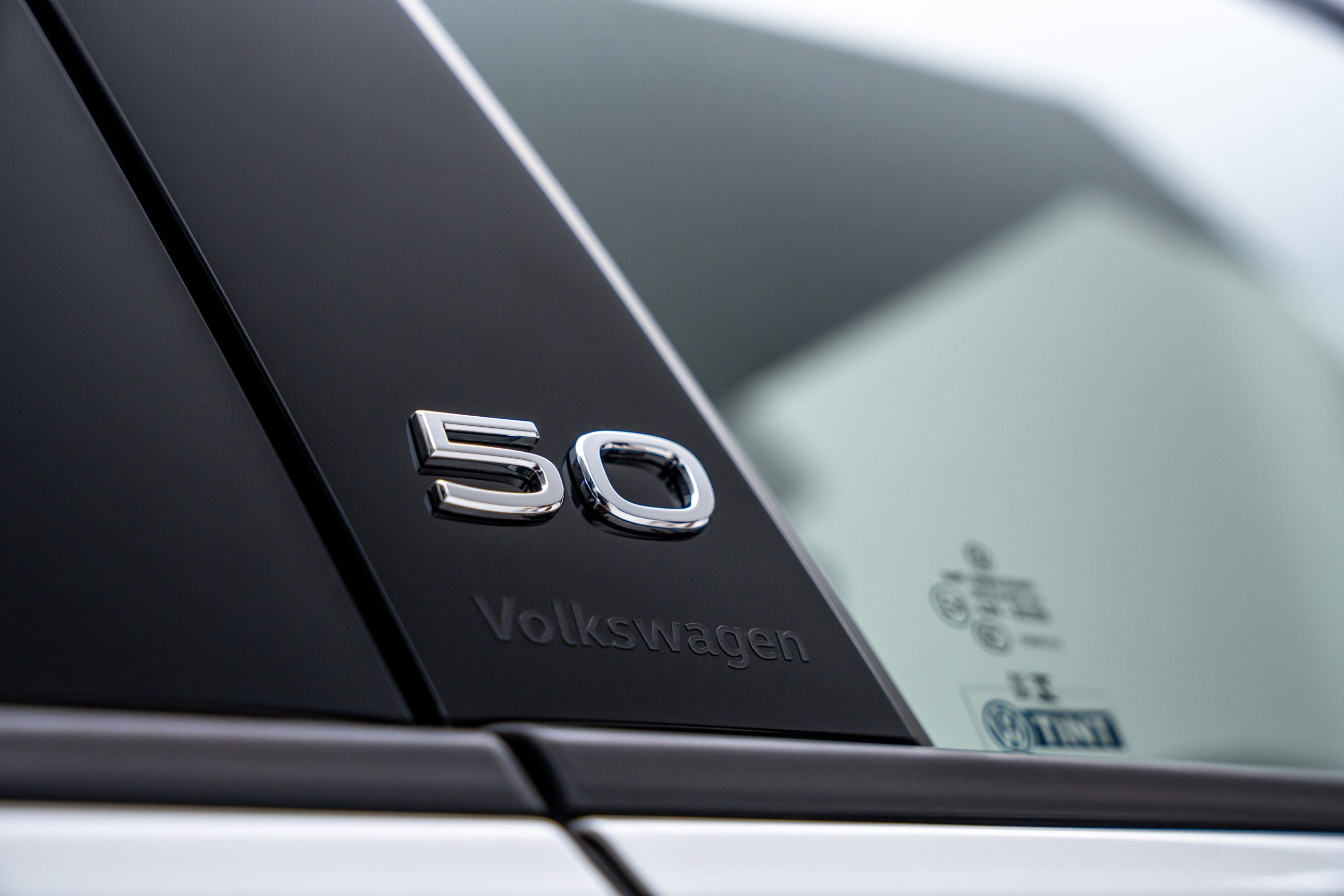 Penampilan bahagian luaran GTI Edition 50 disempurnakan lagi dengan tint “Edition 50 VW” dan emblem “50” pada tiang B yang menunjukkan ini merupakan sebuah model edisi khas.