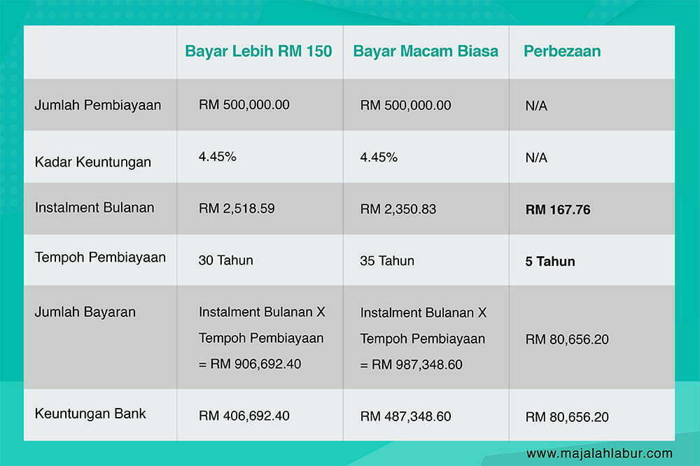 Bagaimana pula kalau kita bayar lebih sebanyak RM150 sebulan?