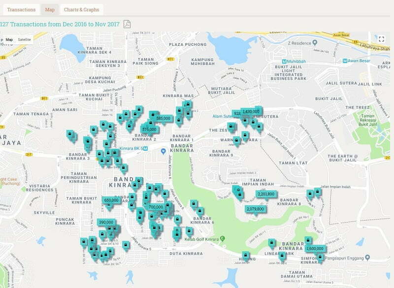 Keluarlah kawasan Bandar Kinrara dan semua 127 transaksi kita dapat lihat di mana kawasan tumpuan. Sekali lagi, hanya boleh lihat 10 transaksi terakhir yang berlaku.