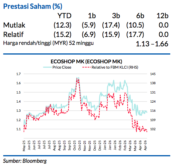 Keputusan 9MFY26 yang dicatatkan oleh Eco-Shop Marketing berjaya memenuhi jangkaan berikutan pembukaan kedai baharu yang kukuh dan kenaikan dalam margin untung kasar (GPM). Industri kedai barangan murah sepatutnya meneruskan pertumbuhan pesat dengan memanfaatkan trendtrend pengguna yang beralih kepada barangan murah, lantas menyediakan fasa pengembangan yang berjangka panjang kepada kumpulan ini. Selain kemampanan perolehan dalam jangka panjang, ECOSHOP turut menawarkan keterlihatan perolehan disebabkan oleh komposisi tawaran produknya yang berteraskan barangan keperluan utama. Kes pelaburan yang langka sebegini akan terus memberikan sokongan pada kenaikan. penilaian saham ini.