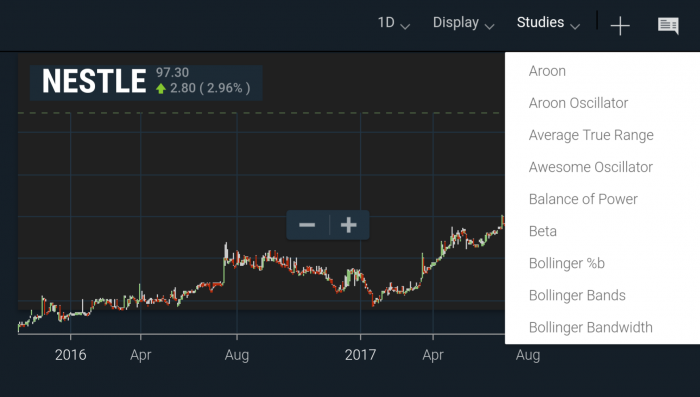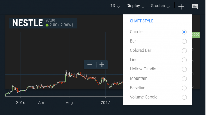 4. Paparan chart seperti candlestick, bar chart dan line chart (boleh pilih mengikut kesesuaian para pelabur)