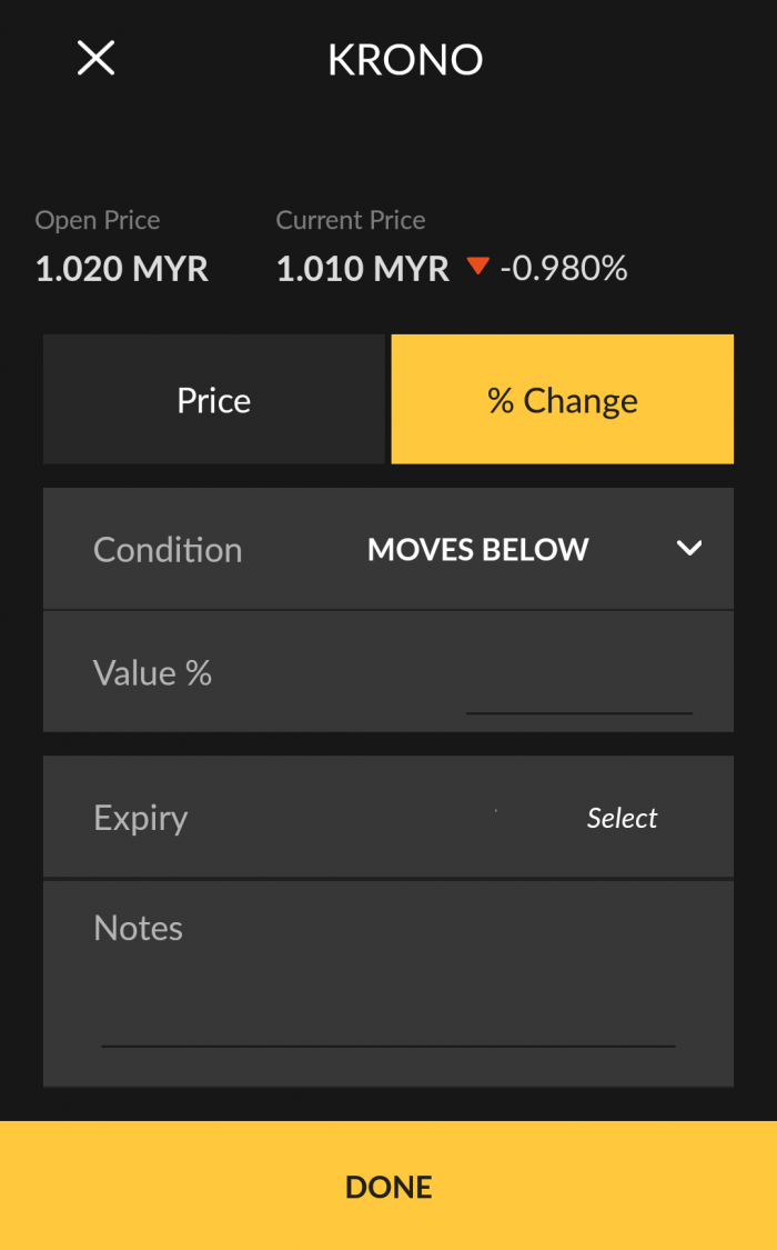 8. Kemudahan price alert – memudahkan anda memantau harga saham semasa