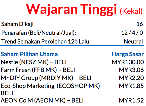 Saranan WAJARAN TINGGI kekal; Saham Pilihan Utama: Nestle, Farm Fresh (FFB), Mr DIY Group, (MRDIY) Eco-Shop Marketing (ECOSHOP), dan AEON Co M