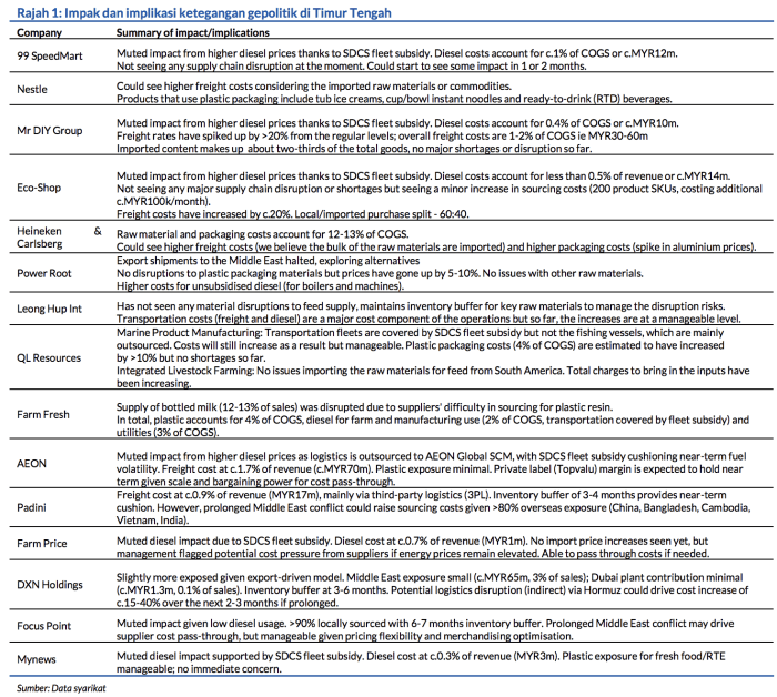 Setakat ini, kenaikan kos sudah terjadi tetapi bukan pada kadar yang mendadak, sementara gangguan rantaian bekalan yang berlaku rata-ratanya terasing. Secara meluasnya, sentimen pengguna mungkin melemah dan menyebabkan pola perbelanjaan yang berjimat cermat, tetapi sambungan komitmen subsidi petrol patut membataskan penurunan.