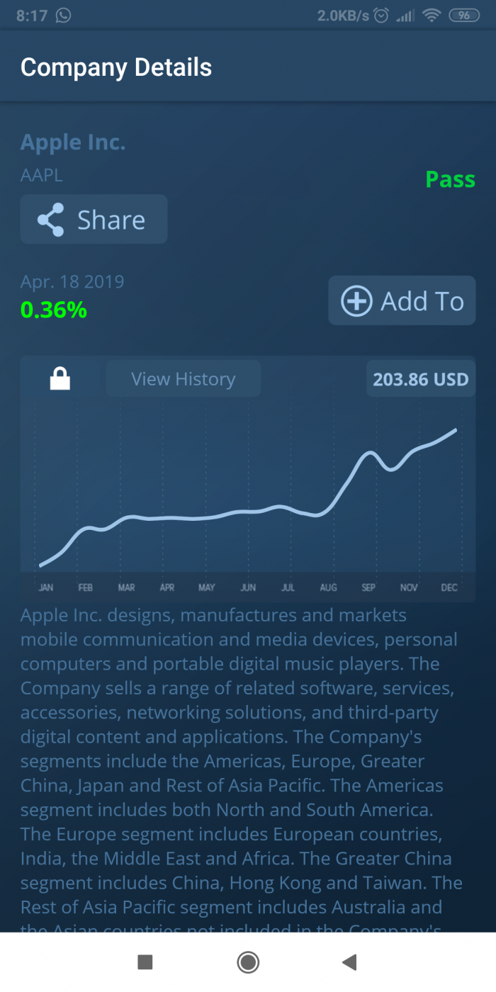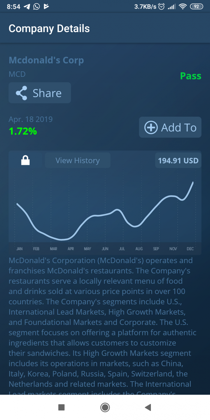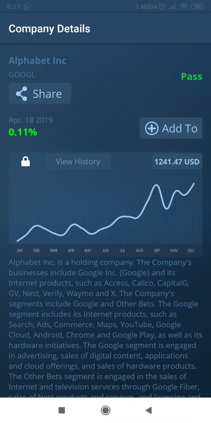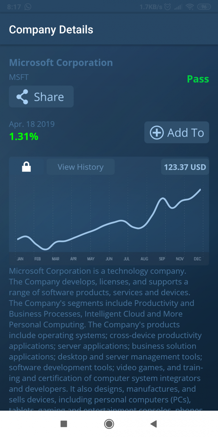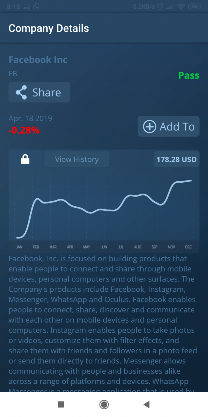 6. Maka keluarlah status patuh Syariah. Kalau Pass menandakan ianya patuh Syariah. Contoh syarikat yang patuh Syariah adalah Apple, Facebook, Google (Alphabet), Microsoft.