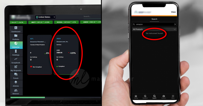 Tetapi dalam contoh ini beliau mungkin tidak menggunakan broker tempatan yang hanya boleh beli saham yang patuh syariah di platform tersebut saja.