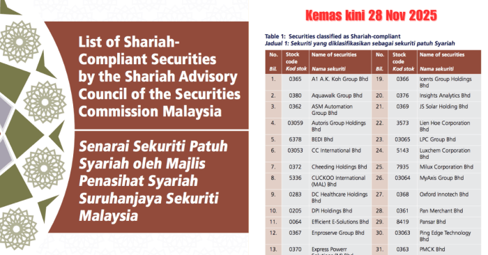 Senarai Terkini Saham Patuh Syariah (Kemas Kini Nov 2025)