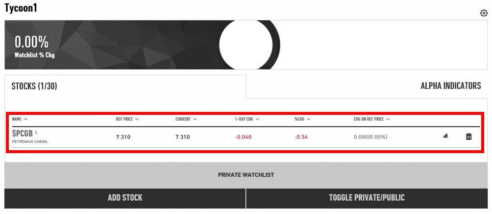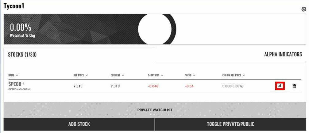 8. Anda akan Nampak saham PETRONAS CHEML di dalam WATCHLIST anda.