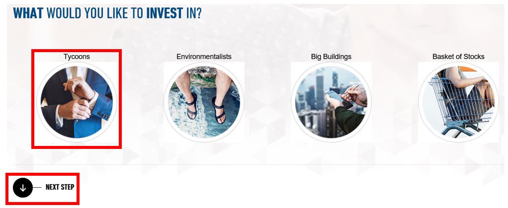 3. Lengkapkan langkah pertama dengan memilih Tycoons -> Next Step
