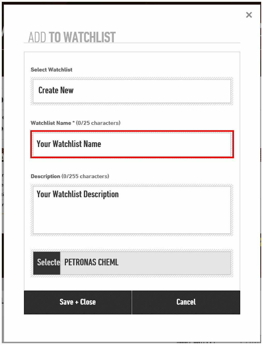 6. Berikan nama kepada WATCHLIST baru anda. Masukkan Tycoon1.