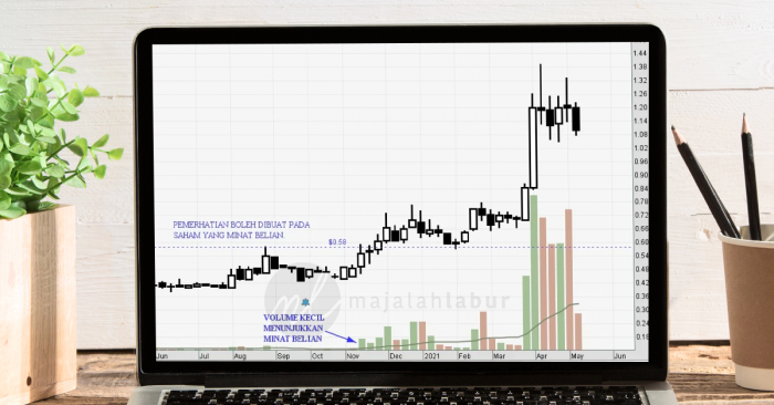 - Buat pemerhatian rapi melihat jika volume yang besar terus masuk dalam saham tersebut.