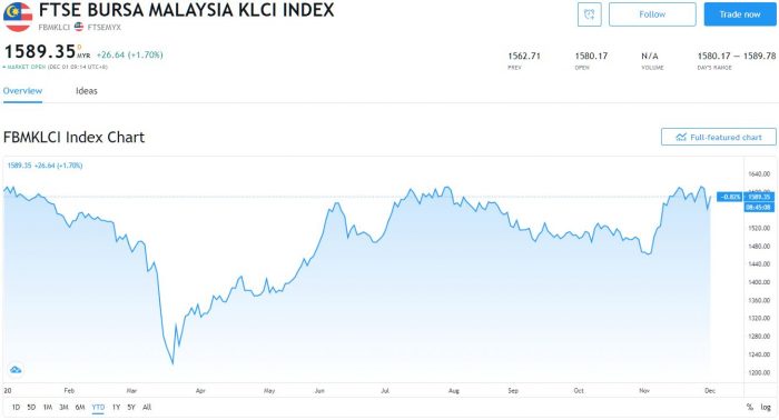 Indeks FBM KLCI 30 November 2020: 1,562.70 Mata