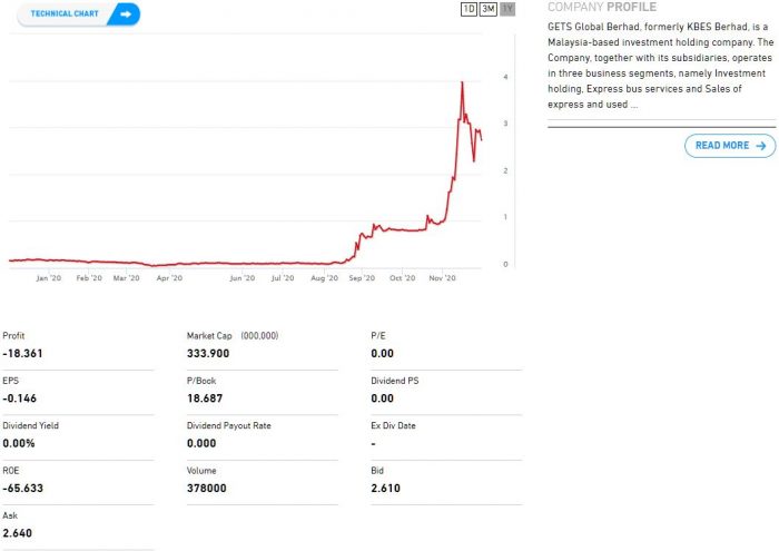 Dalam contoh GETS Global yang berada di tempat pertama, angin takde ribut takde tapi tiba-tiba harga saham mencanak naik. Cuba bayangkan daripada harga 8 sen pada bulan Ogos, mencecah RM4 pada bulan November. Memang tak masuk akal kan?