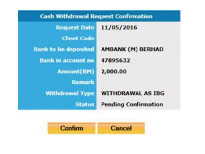 2b) Semak nombor akaun bank dan amaun pengeluaran, klik Confirm