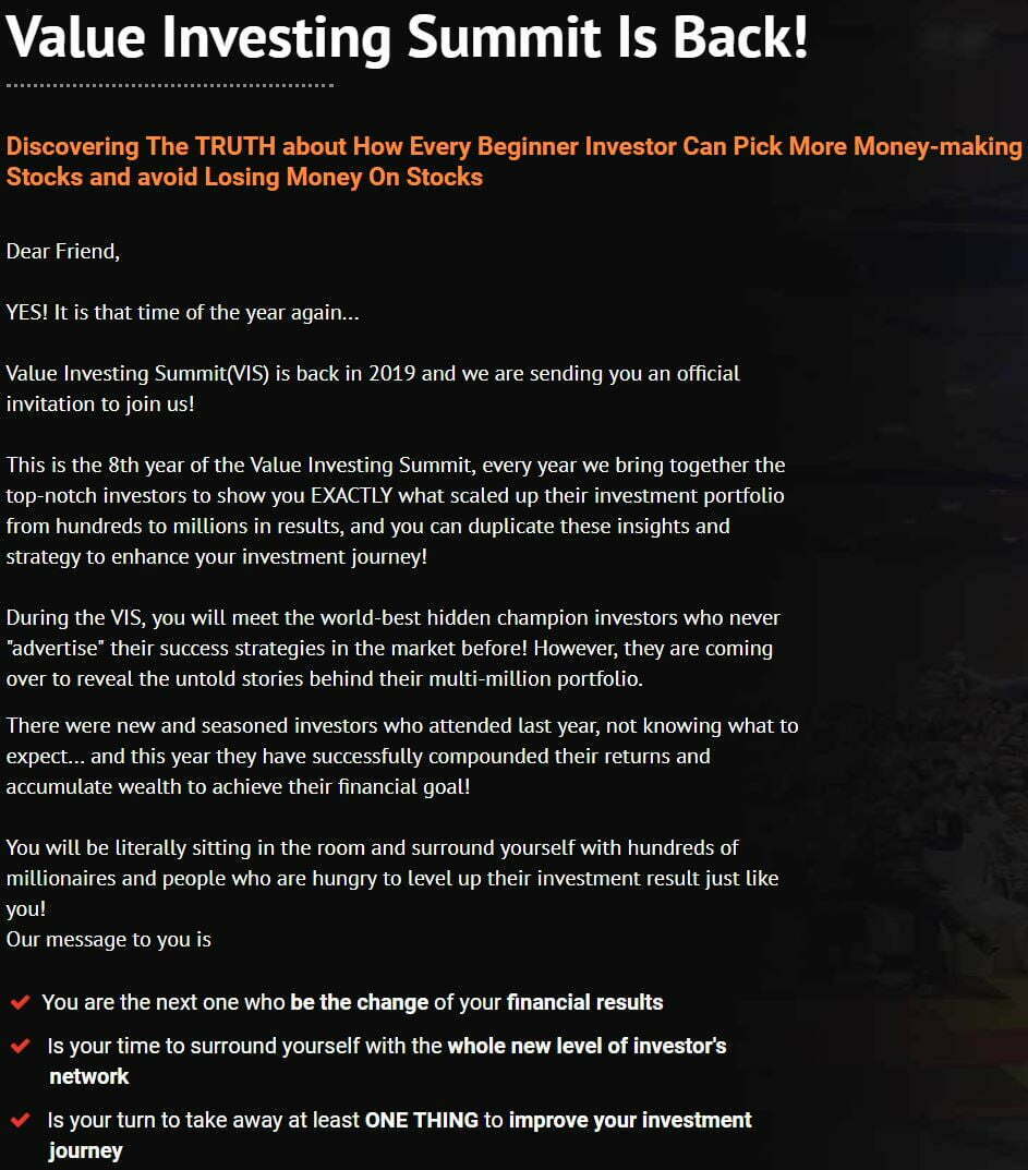 Tak percaya, masuk sendiri laman web Value Investing Summit.