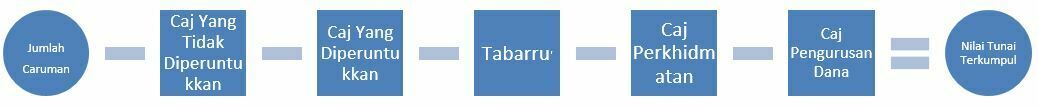 Hanya jumlah dari Nilai Tunai Terkumpul yang akan dilaburkan kedalam Unit Pelaburan. Penolakan atau caj daripada Jumlah Caruman hanya dikenakan kepada pencarum pada Tahun sijil yang pertama sehingga keenam atau pertama sehingga kesepuluh.